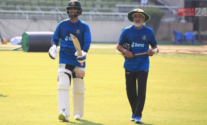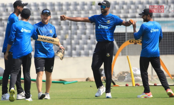 ওয়ানডে ও টি-টোয়েন্টি সিরিজ শেষে একমাত্র টেস্ট ম্যাচকে সামনে রেখে মিরপুর শেরেবাংলায় অনুশীলনে বাংলাদেশ দলের সদস্যরা। ছবি- শোয়েব মিথুন
