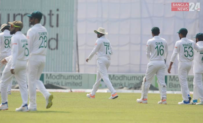 আয়ারল্যান্ডের সঙ্গে একমাত্র টেস্টে টস হেরে ফিল্ডিংয়ে বাংলাদেশ। ছবি: শোয়েব মিথুন