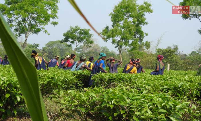 বাগানে চা-পাতা তুলতে ব্যস্ত শ্রমিকরা। ছবিটি খাগড়াছড়ির রামগড় এলাকা থেকে তুলেছেন জয়ন্ত জোয়ার্দ্দার।