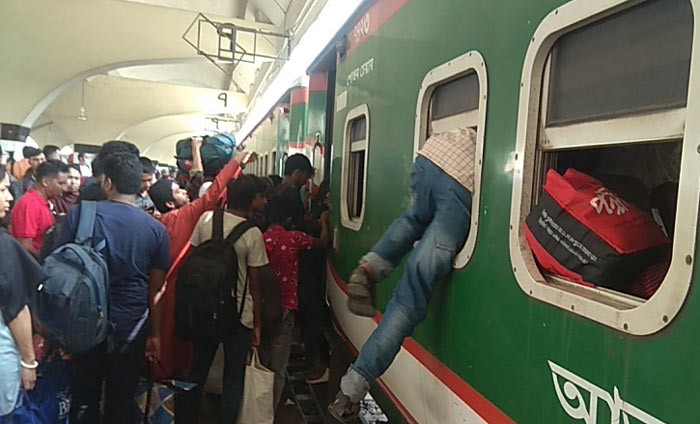 কমলাপুর রেল স্টেশনে ঈদে ঘরমুখো মানুষের উপচেপড়া ভিড়। ছবি: সাকিল আহমেদ।