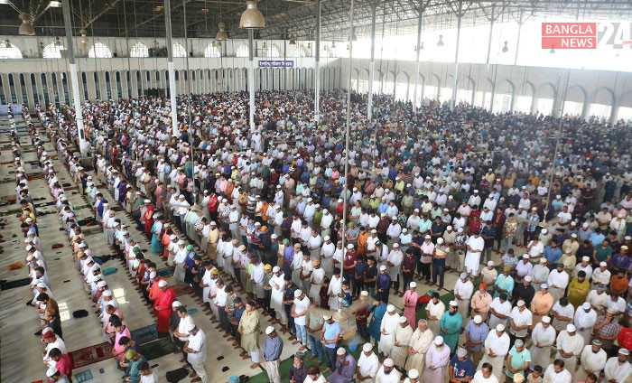 জাতীয় ঈদগাহে অনুষ্ঠিত প্রধান জামাতে অংশ নিতে মুসল্লিদের ঢল। ছবি: ডিএইচ বাদল