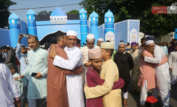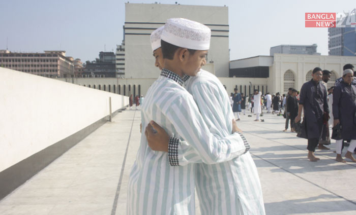 ঈদের নামাজ শেষে কোলাকুলি। ছবি: ডিএইচ বাদল