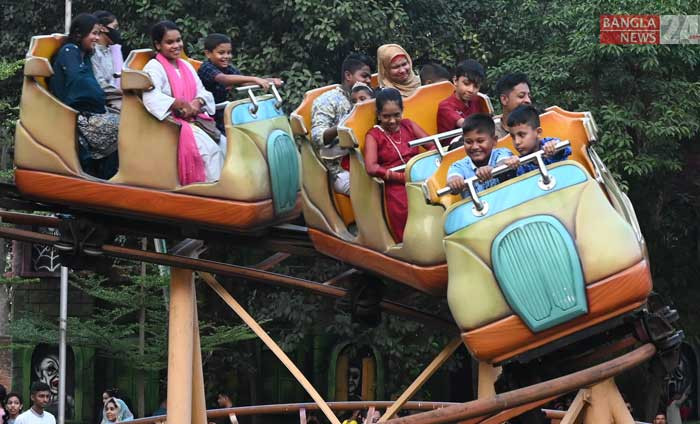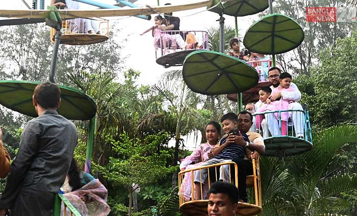 ঈদের দিন বিকেলে চট্টগ্রাম শিশু পার্কে বিনোদনপ্রেমী মানুষের ভিড়। ছবি: উজ্জ্বল ধর