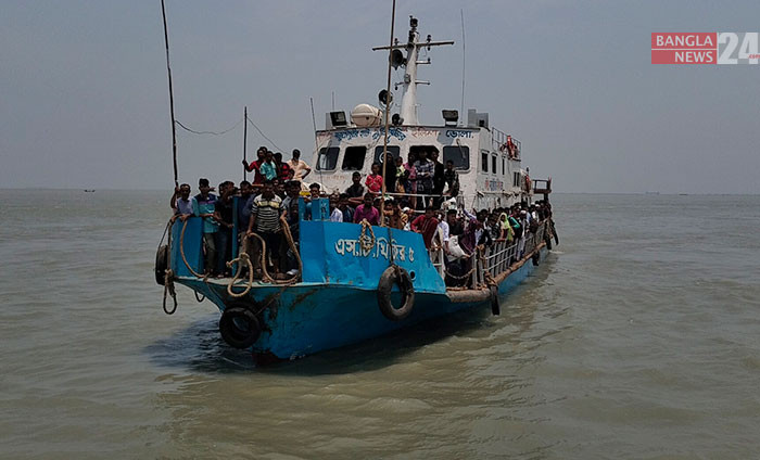 ভোলা থেকে নৌপথে গন্তব্যে যাচ্ছেন যাত্রীরা। ছবি: ছোটন সাহা