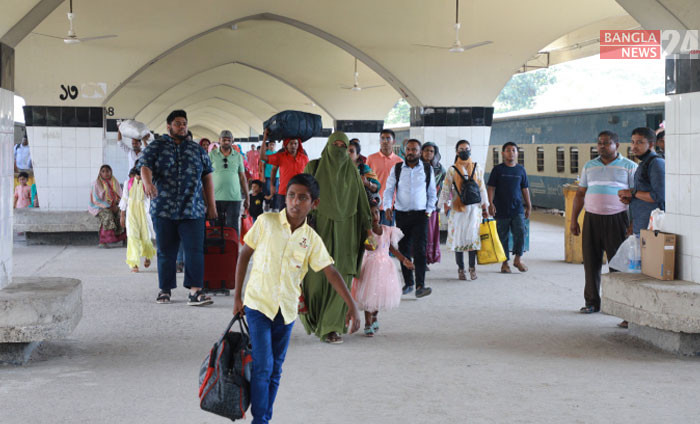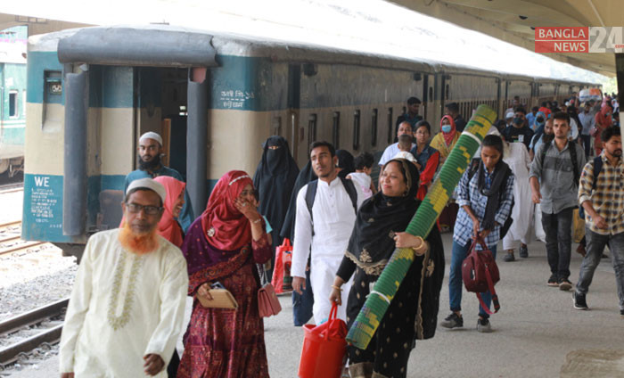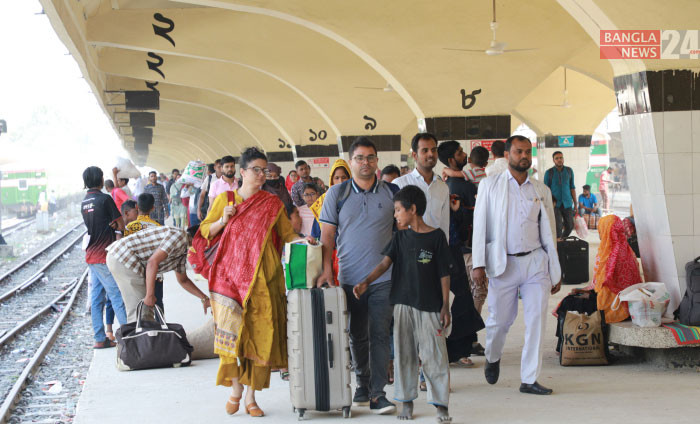 ঈদের ছুটির পর রাজধানীর কমলাপুর রেলস্টেশনে যাত্রীদের আসা-যাওয়া। ছবি: ডিএইচ বাদল