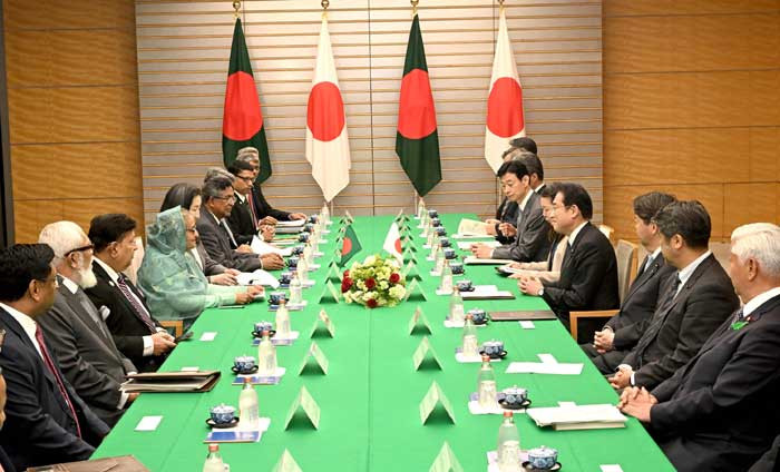 প্রধানমন্ত্রী শেখ হাসিনা এবং জাপানের প্রধানমন্ত্রী ফুমিও কিশিদার মধ্যে দ্বিপাক্ষিক আলোচনা আজ জাপানের প্রধানমন্ত্রীর কার্যালয়ে অনুষ্ঠিত হয়েছে। ছবি: পিএমও