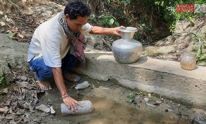 বান্দরবানের চিম্বুক পাহাড়ের পাদদেশে পানির কষ্টে ম্রো সম্প্রদায়,বাড়ছে নানা রোগব্যাধি। ছবি: কৌশিক দাশ