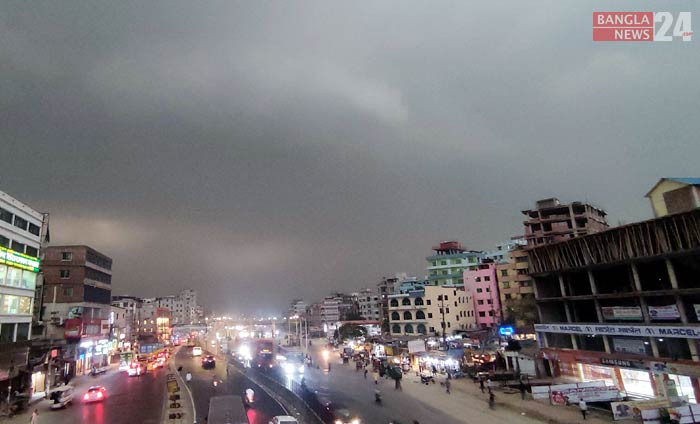 কালো মেঘে ছেয়ে গেছে রাজধানীর আকাশ। যাত্রাবাড়ির কাজলা থেকে ছবি তুলেছেন শোয়েব মিথুন।