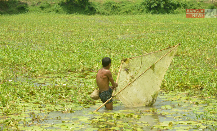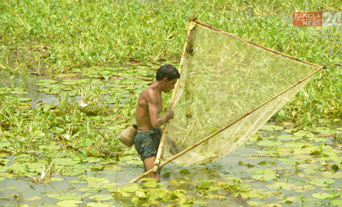 ভ্যাসাল জাল দিয়ে মাছ ধরে সংসার চালান রহিম মিয়া। সাভারের আশুলিয়া এলাকা থেকে ছবিটি তুলেছেন জি এম মুজিবুর।