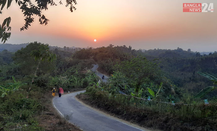 নাইক্ষ্যংছড়ির সোনাইছড়ি সড়কে গোধূলি বেলার মুগ্ধতা। ছবি: সুনীল বড়ুয়া