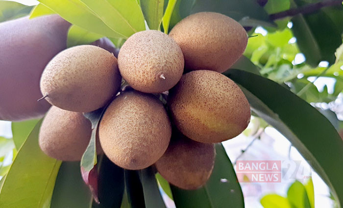 ছাদ বাগানে টপের গাছে সফেদা ফলের থোকা। ছবি: জি এম মুজিবুর