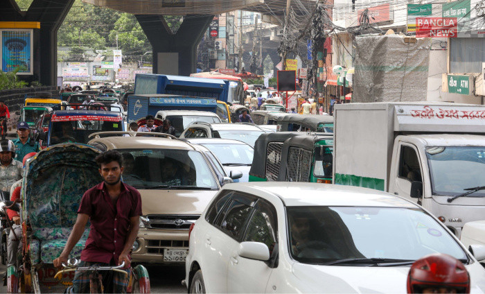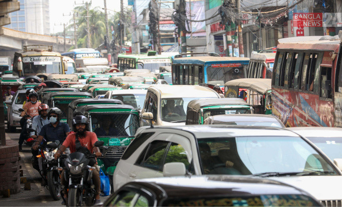 চট্টগ্রাম নগরীর জিইসি মোড়সহ প্রায় প্রতিটি মোড়ে যানজট এখন নিত্যসঙ্গী, নষ্ট হচ্ছে কর্মঘণ্টা। ছবি: উজ্জ্বল ধর