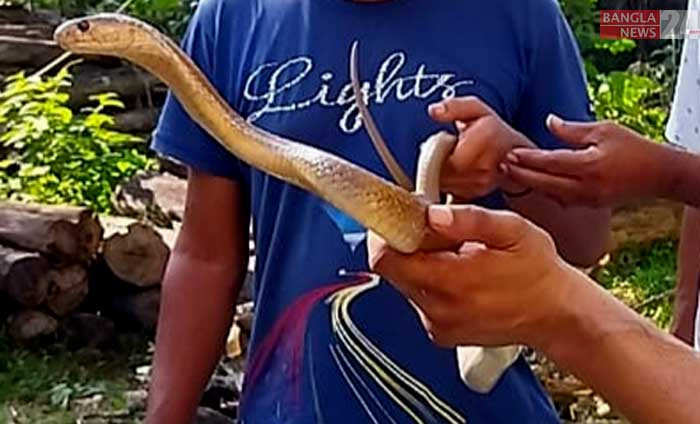 শ্রীমঙ্গলের বিষামণি থেকে উদ্ধারকৃত ‘পদ্ম-গোখরা’। ছবি: বাংলানিউজ