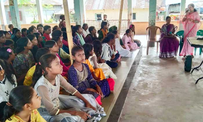 চা বাগানের শিশুদের ঋতুকালীন স্বাস্থ্যবিষয়ক আলোচনা। ছবি: বাংলানিউজ