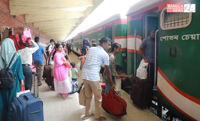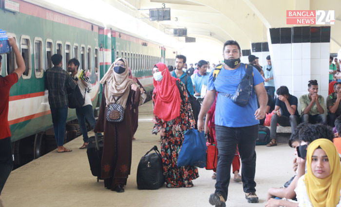 ঈদকে সামনে রেখে বাড়ি ফিরতে শুরু করেছেন রাজধানীবাসী, কমলাপুর রেলস্টেশন থেকে ছবিটি তুলেছেন ডিএইচ বাদল