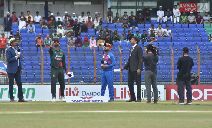 চট্টগ্রামের জহুর আহমেদ স্টেডিয়ামে বাংলাদেশ বনাম আফগানিস্তান ম্যাচের টস। ছবি: সোহেল সরওয়ার