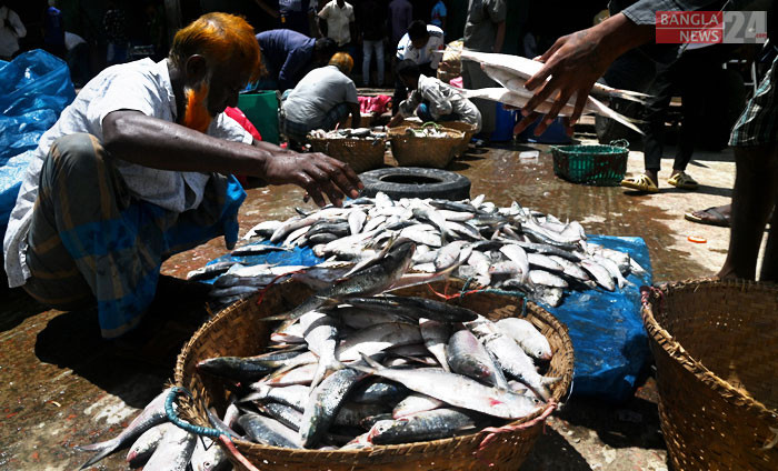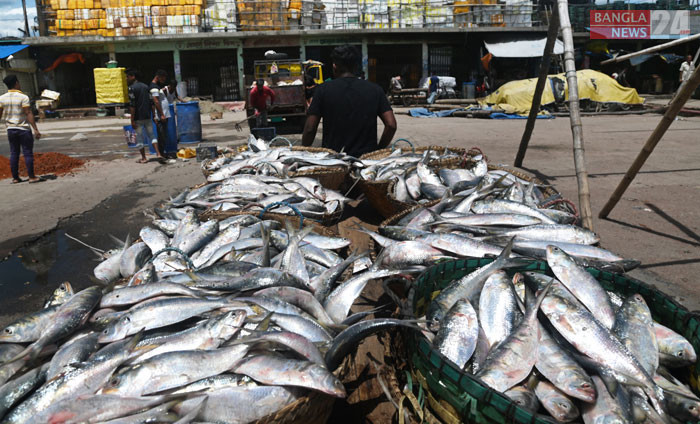 ৬-১০ ইঞ্চির ইলিশ চট্টগ্রামের ফিসারীঘাটে বিক্রি হচ্ছে ৫০০ টাকা কেজি দরে। ছবি: উজ্জ্বল ধর