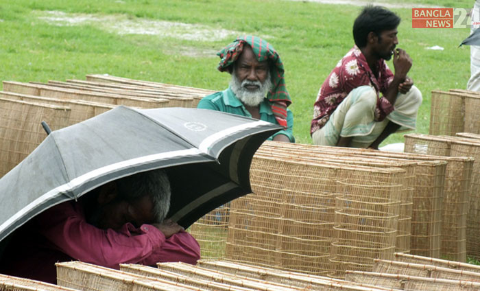 অবৈধ চায়না জাল দিয়ে মাছ ধরার কারণে খৈলশুনির চাহিদা কমে গেছে। খৈলশুনের হাট বসলেও নেই ক্রেতা। ছাতা মাথায় দিয়ে ঘুমিয়ে পড়েছেন ষাটোর্ধ বয়সী খৈলশুন বিক্রেতা। পাবনার চাটমোহর উপজেলা অমৃতকুন্ডা হাট থেকে ছবিটি তুলেছেন টিপু সুলতান।