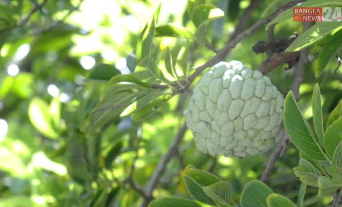 সবুজ পাতার মাঝে দুলছে আতাফল। ছবি: টিপু সুলতান