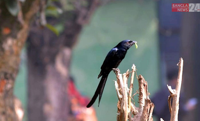 বাচ্চাকে খাওয়াতে পোকা শিকার করে এনেছে ফিঙে পাখি। ছবিটি দারুস সালাম এলাকা থেকে তুলেছেন জি এম মুজিবুর