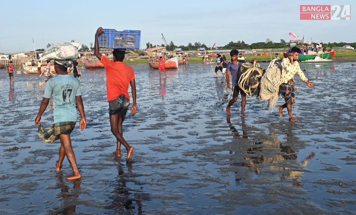 নিষেধাজ্ঞা অমান্য করে সাগরে মাছ ধরছেন অনেক জেলেরা। চট্টগ্রামের দক্ষিণ কাট্টলী রাসমনি ঘাট এলাকা থেকে ছবি তুলেছেন উজ্জ্বল ধর