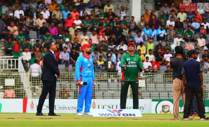 সিলেট আন্তর্জাতিক স্টেডিয়ামে টস জিতে আগে ফিল্ডিংয়ের সিদ্ধান্ত নেয় বাংলাদেশ। ছবি: মাহমুদ হোসেন