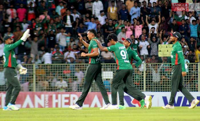 তাসকিন আহমেদের উইকেটের উল্লাস। ছবি:মাহমুদ হোসেন।