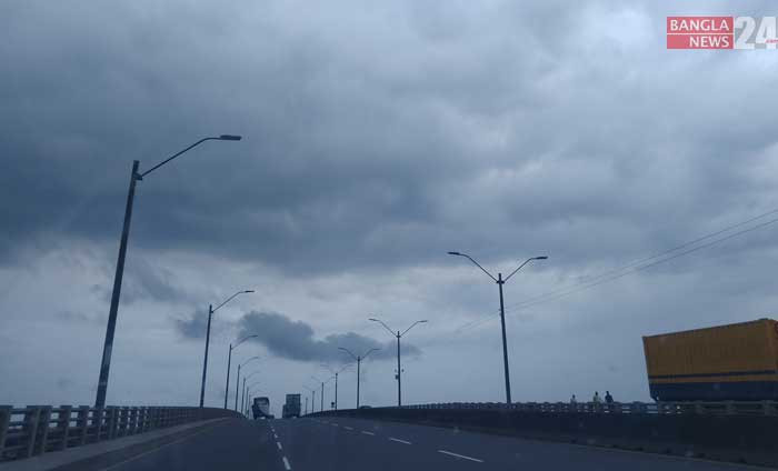 আকাশে কালো মেঘের ঘনঘটা, ছবিটি মেঘনা ব্রিজ থেকে তুলেছেন রাজীন চৌধুরী।