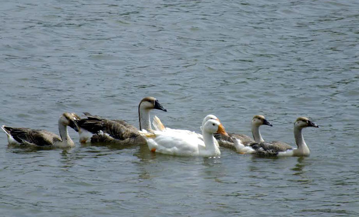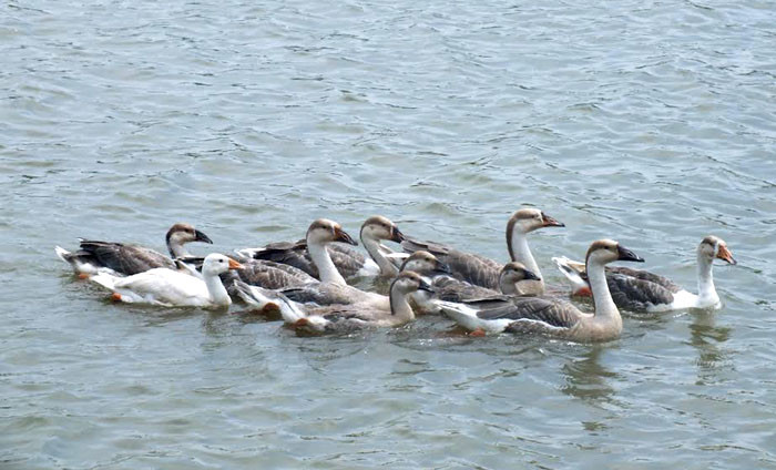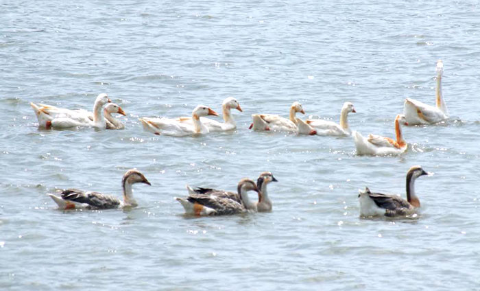 বর্ষায় নদীর পানিতে জলকেলিতে ব্যস্ত রাজহাঁসের দল। পাবনার ভাঙ্গুড়া উপজেলার পার-ভাঙ্গুড়া ইউনিয়নের কৈডাঙ্গার গুমানী নদীর থেকে ছবিটি তুলেছেন টিপু সুলতান।