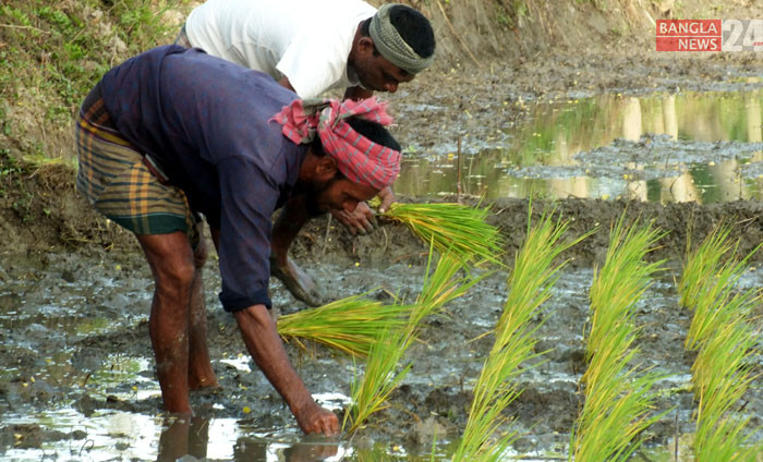 ধানের চারা বুনছেন কৃষক। পাবনার ঈশ্বরদী উপজেলার সাঁড়া ইউনিয়নের ধাপাড়ী গ্রাম থেকে ছবিটি তুলেছেন টিপু সুলতান।