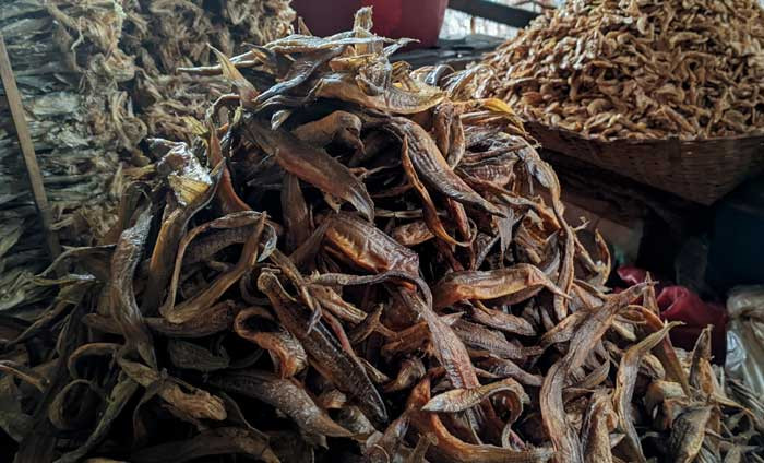 দোকানে শোভা পাচ্ছে বাইম-শুঁটকি। ছবি: বাংলানিউজ