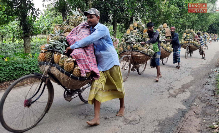 বিক্রির জন্য আনারস হাটে নিয়ে যাওয়া হচ্ছে। টাঙ্গাইল থেকে ছবিটি তুলেছের সুমন রায়