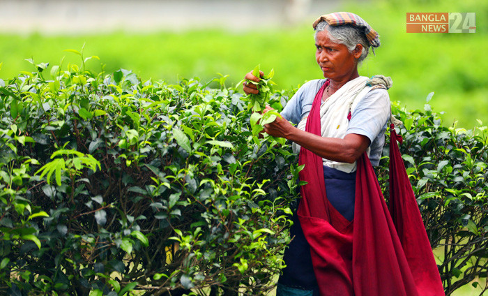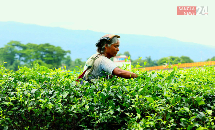 বৃষ্টিতে সজীবতা পেয়েছে চা-বাগান। বাগানে চা-পাতা তোলার কাজে ও নতুন চা গাছ রোপণে ব্যস্ত সময় পার করছে নারী চা-শ্রমিকরা। ছবি: মাহমুদ হোসেন।