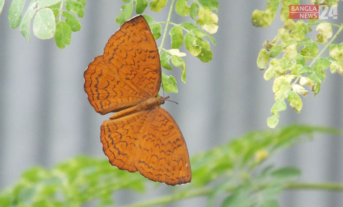 মেঘলা দিনে সজনে পাতায় পাখা মেলেছে প্রজাপতি। ঈশ্বরদী পৌর এলাকা থেকে ছবি তুলেছেন টিপু সুলতান