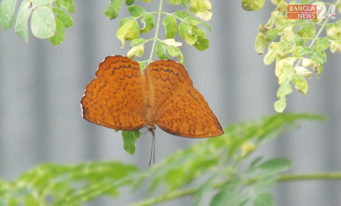 মেঘলা দিনে সজনে পাতায় পাখা মেলেছে প্রজাপতি। ঈশ্বরদী পৌর এলাকা থেকে ছবি তুলেছেন টিপু সুলতান