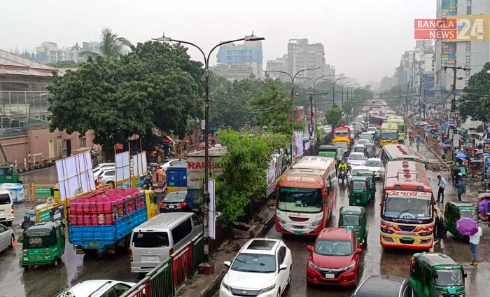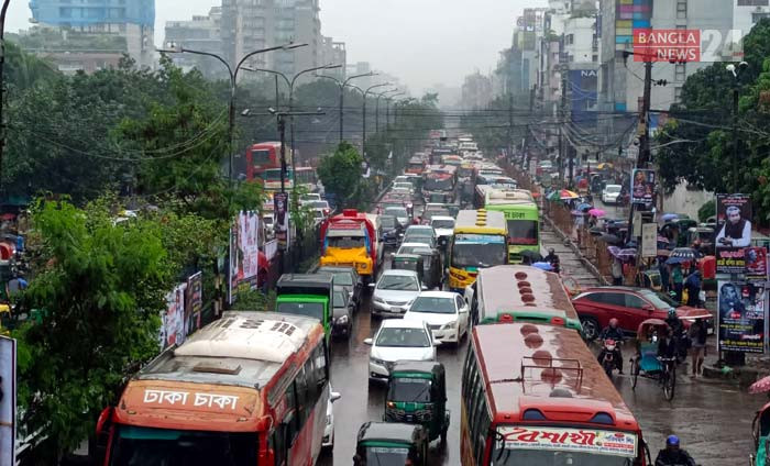 বৃষ্টি ও যানজটে ভোগান্তিতে নগরবাসী। রাজধানীর নতুন বাজার এলাকা থেকে তুবি তুলেছেন হোসাইন সাগর।