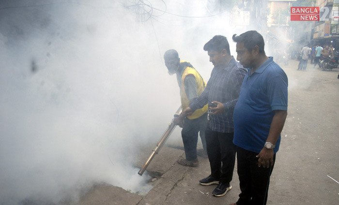 চসিক প্রতিদিনই ফগার মেশিন দিয়ে চট্টগ্রামের নগরে মশার ওষুধ ছিটাচ্ছে। ছবি: উজ্জ্বল ধর