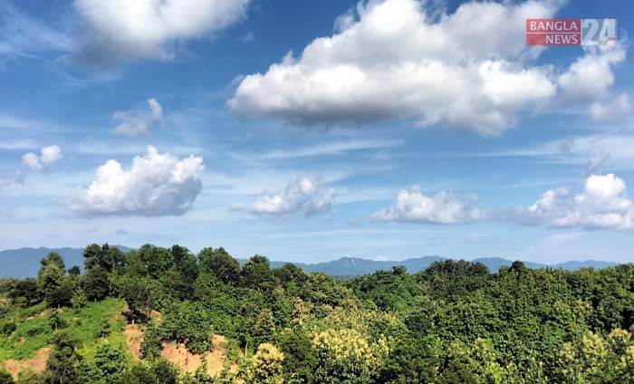 শরৎকালে পাহাড়ের ওপরে শুভ্র মেঘের ভেলা।। দূরে দেখা যাচ্ছে কালাপাহাড়। ছবিটি খাগড়াছড়ি জেলার লক্ষীছড়ি থানা এলাকা থেকে তুলেছেন জাহিদ হাসান।