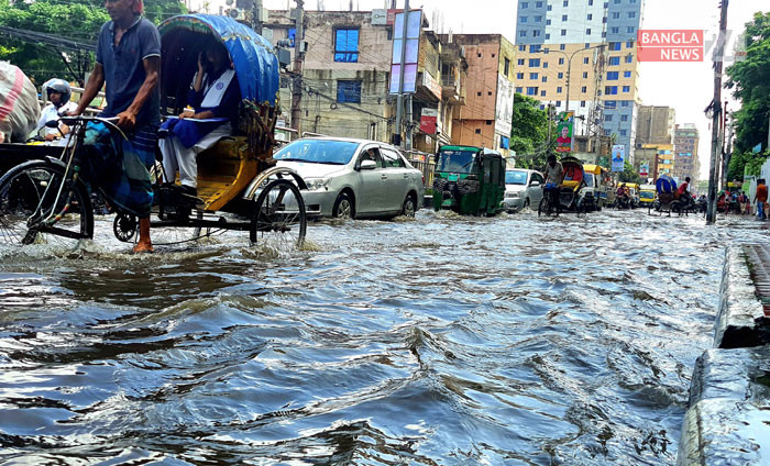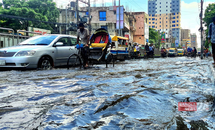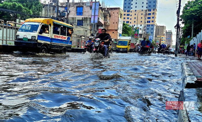 বৃষ্টি হলেই গাবতলী মাজার রোড যেন ছোট খাটো নদী। ছবি জি এম মুজিবুর