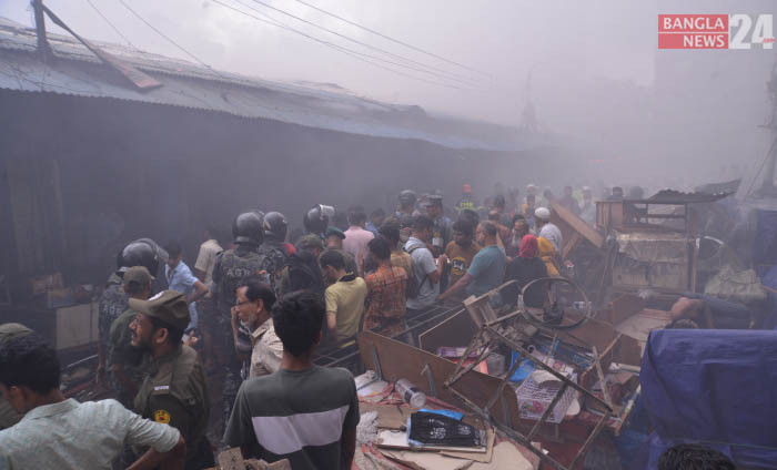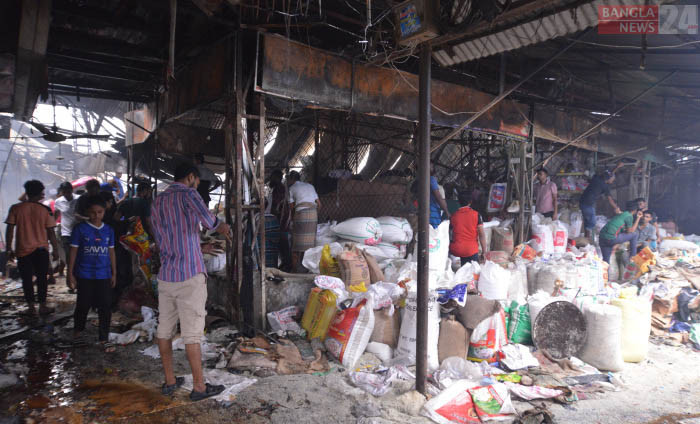 রাজধানীর মোহাম্মদপুরে কৃষি মার্কেটে লাগা আগুনে চার শতাধিক দোকান পুড়ে গেছে।। ছবি: জি এম মুজিবুর