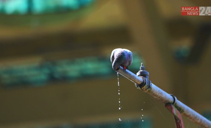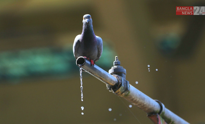শরতের গরমে মানুষের পাশাপাশি অতিষ্ঠ পাখিকুলও। তপ্ত দুপুরে পানির পাইপে মুখ লাগিয়ে তৃষ্ণা মেটাচ্ছে কবুতর। ছবি:মাহমুদ হোসেন