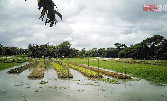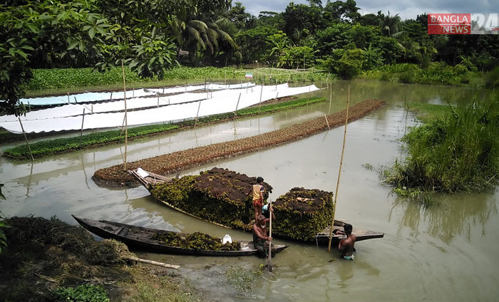 ভাসমান পদ্ধতিতে চারা ও শাকসবজি চাষ। বরিশালের বানারীপাড়ার বিশারকান্দি থেকে ছবিটি তুলেছেন এন আমিন রাসেল