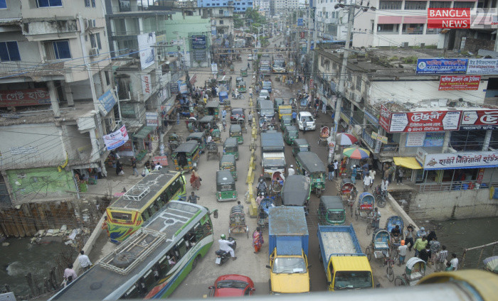 প্রায় ৮ মাস পর পুরোদমে গাড়ি চলছে নগরীর মুরাদপুর-অক্সিজেন সড়কের চশমা খালের ওপর তৈরি কালর্ভাট দিয়ে। ছবি: উজ্জ্বল ধর