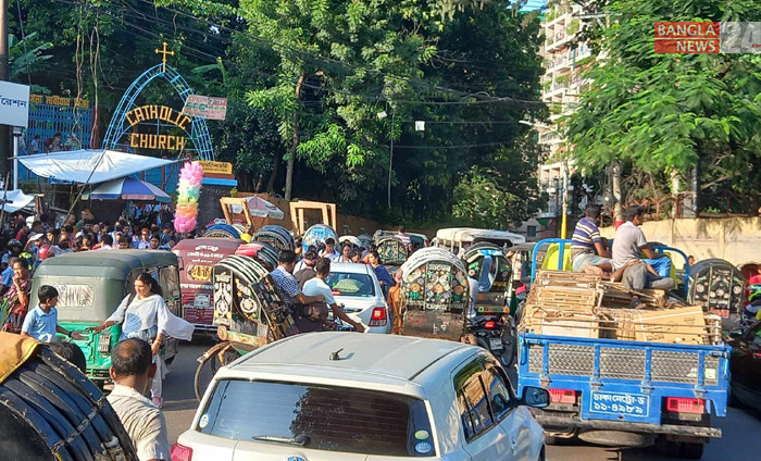 স্কুল ও অফিস ছুটির সময়ে চট্টগ্রাম নগরের স্কুলপাড়াখ্যাত জামালখানে তীব্র যানজট। ছবি: সোহেল সরওয়ার