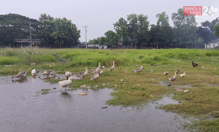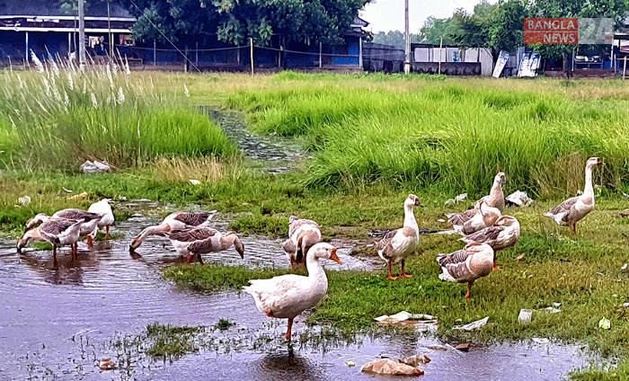 খোলা মাঠে বিচরণ করছে রাজ হাঁসের দল। কুমিল্লার মুরাদনগর থেকে ছবি তুলেছেন জি এম মুজিবুর।