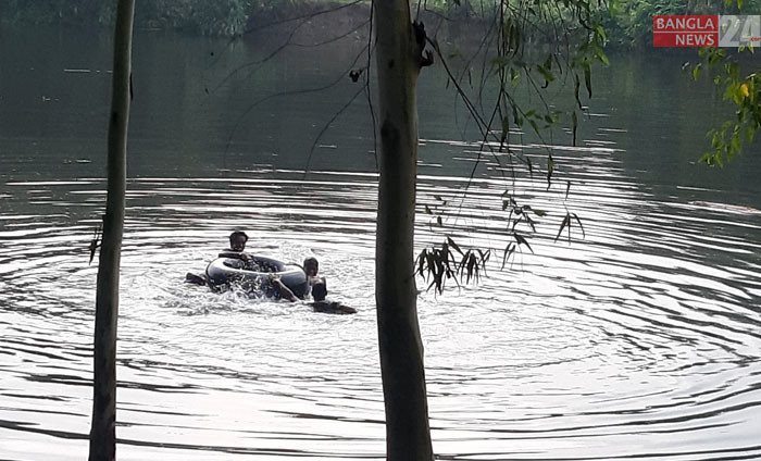 পানিতে টিউব নিয়ে খেলায় মেতেছেন সৈয়দপুরের কামারপুকুরের কিশোররা। ছবি- আমিরুজ্জামান