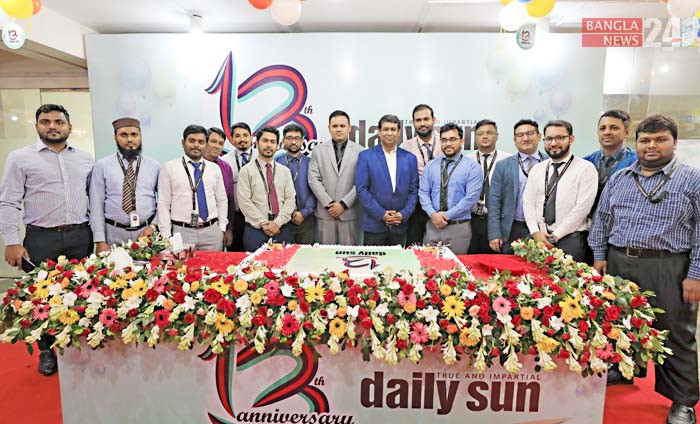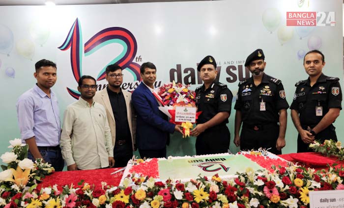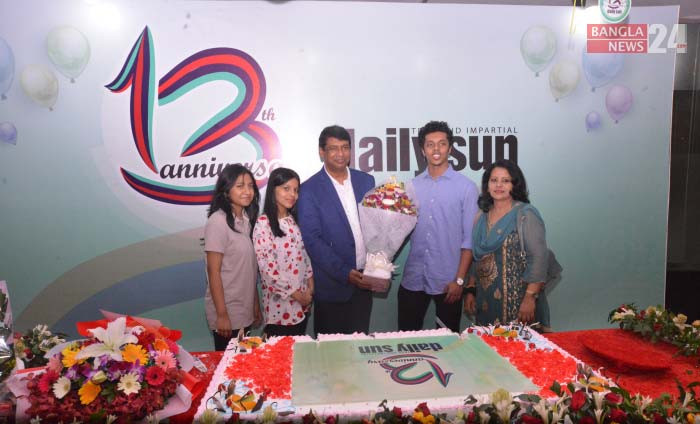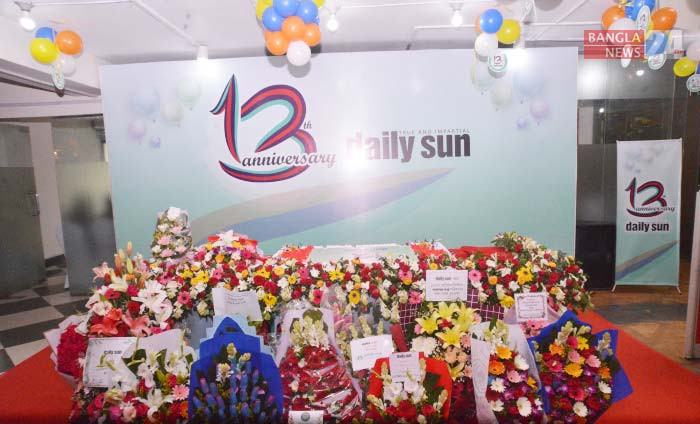 জাতীয় ইংরেজি দৈনিক ডেইলি সানের ১৩তম প্রতিষ্ঠা বার্ষিকীতে শুভেচ্ছা। ছবি জি এম মুজিবুর