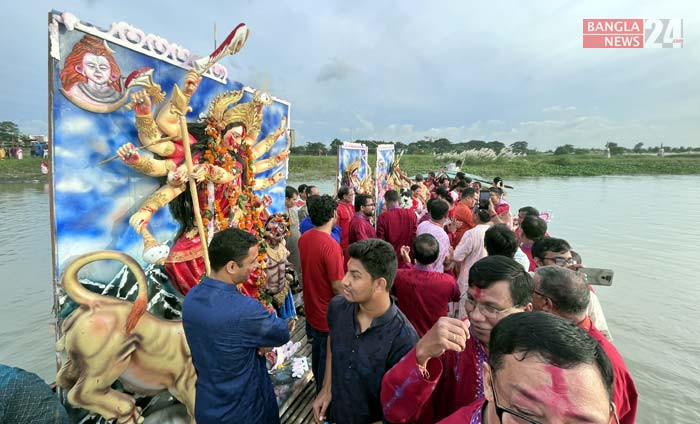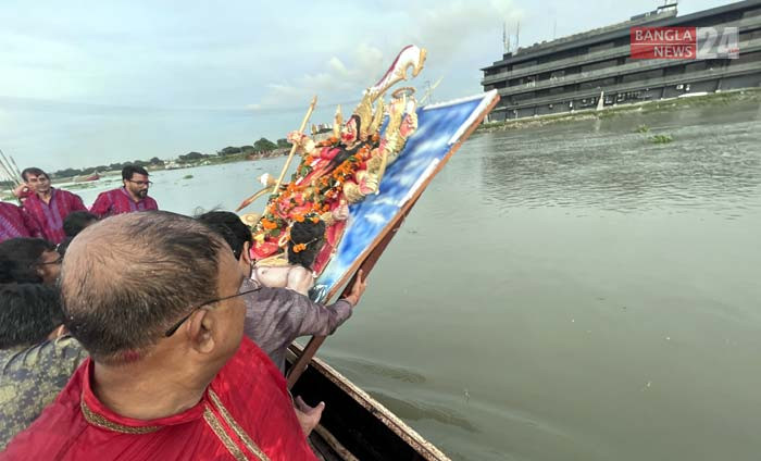 চলছে প্রতিমা বিসর্জন। তুরাগ নদী থেকে ছবি তুলেছেন রাজিন চৌধুরী।