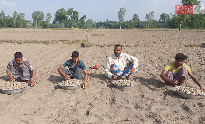 আগাম আলু চাষে ব্যস্ত কৃষক। ছবিটি সৈয়দপুর থেকে তোলা