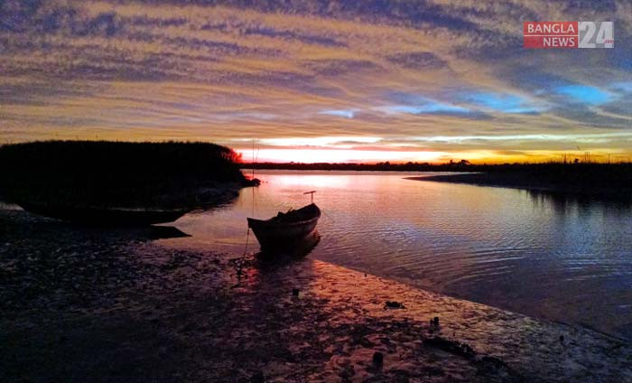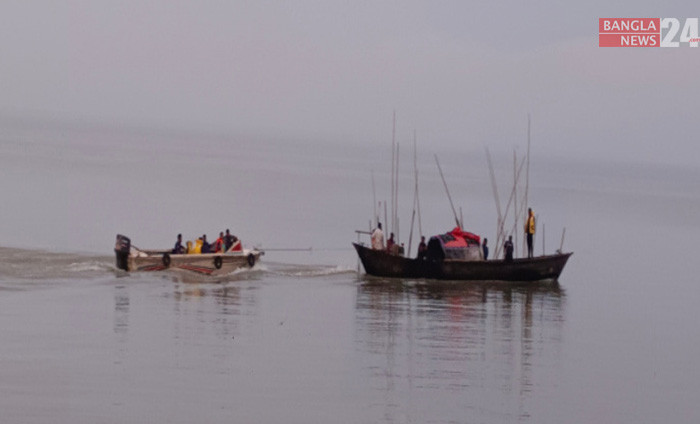 নদীতে মাছ ধরার নৌকা। হাইমচর থেকে ছবিটি তুলেছেন শাকিল আহমেদ